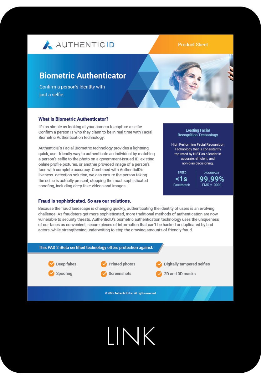 In designing the product sheets for the sales team, I wove the AuthenticID triangle into the header as a consistent visual anchor, reinforcing brand identity from the first glance.
